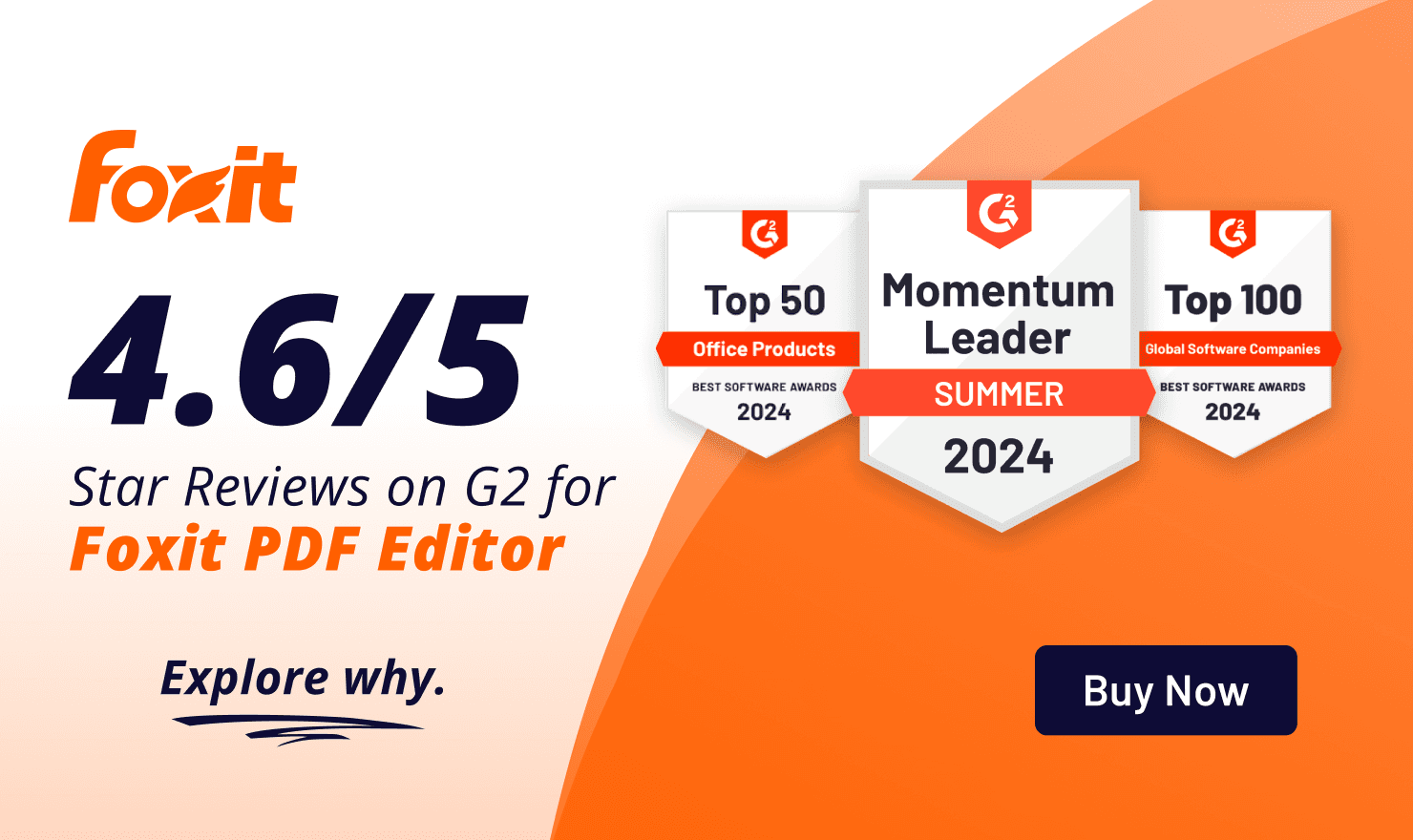 Primary Color: Foxit Orange with white text for high visibility.