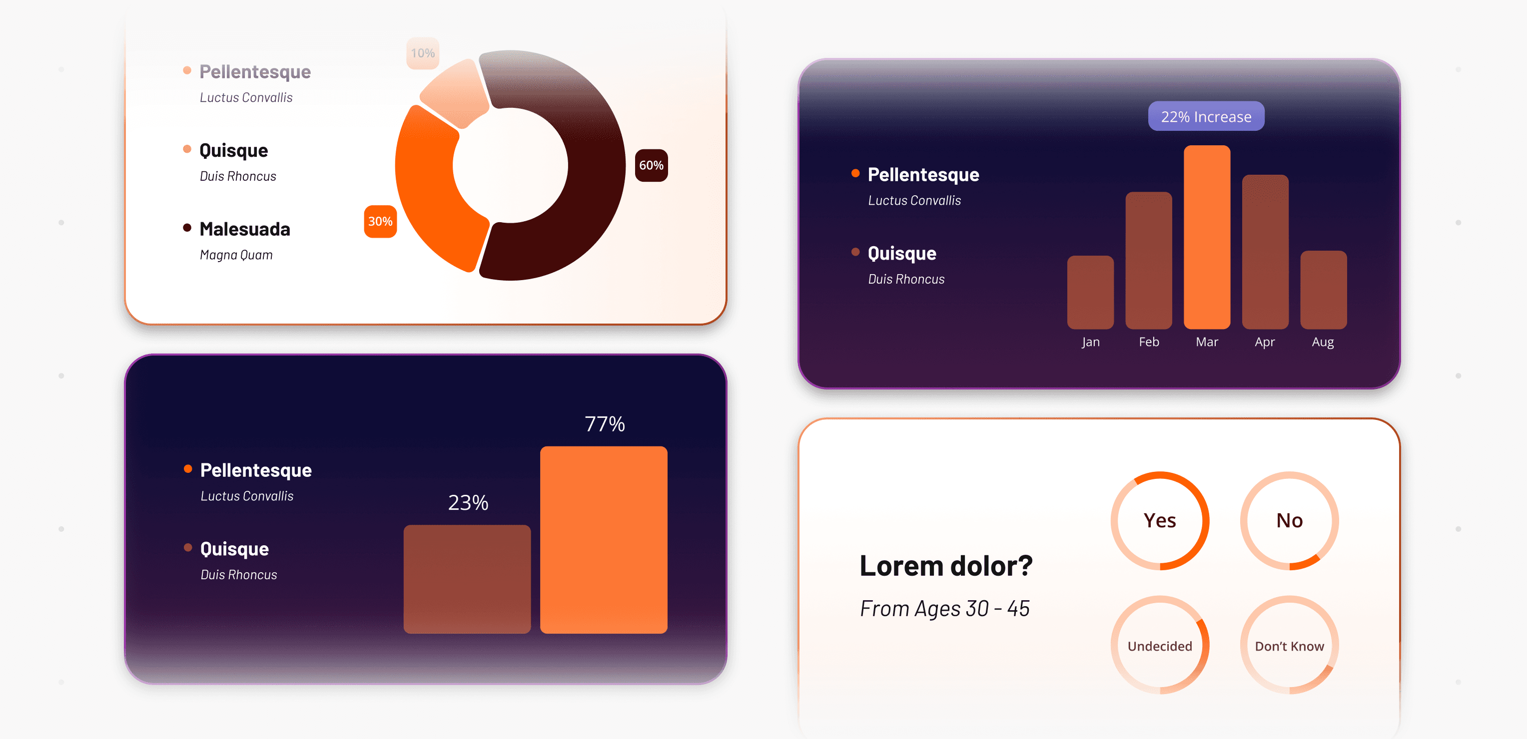 Primary Colors: Foxit Orange, Shadowberry, Eclipse, and White are the core colors for data visualizations. Tints and shades may be utilized to differentiate subgroups or data points within graphs.